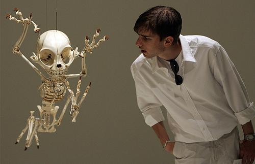 34.August 26, 2008. 游客观看放置在瑞士巴塞尔的猫和老鼠中猫的模拟骨骼(韩国艺术家 Hyungkoo Lee 制作)