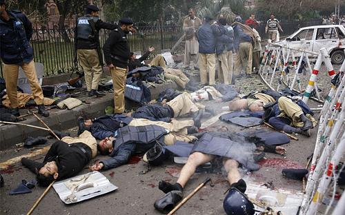 35.January 10, 2008. 自杀炸弹在巴基斯坦拉合尔的高级法院警察驻地引爆 , 造成 21 人死亡 , 大多为警察