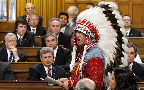 加拿大总理哈泊与其他议员听取加拿大原住xxx合酋长
