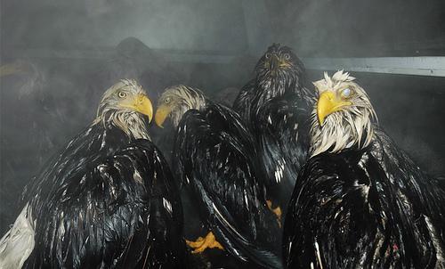 鹰群等待被转移到美国鱼类和野生动物仓库