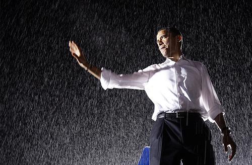 民主党总统候选人参议员奥巴马在雨中的马力华盛顿大学向人群挥手