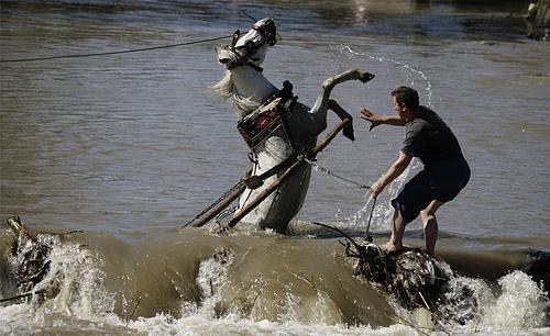 一名科索沃阿族人在普力士蒂娜以南 Stimlje 拯救一匹冲入河中的马