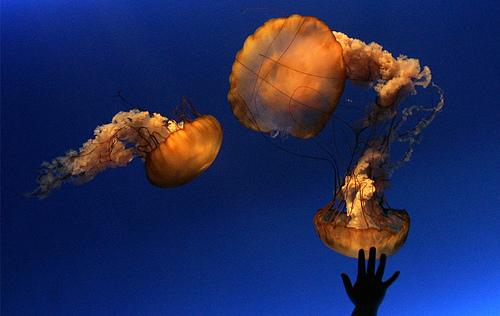 8、2008年1月20日,香港海洋公园水族馆,一名年轻旅客对海蜇很感兴趣