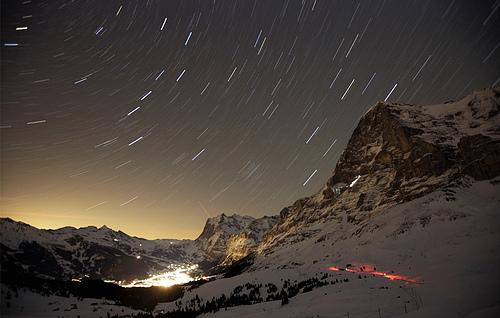 11、2008年1月10日,在瑞士 Grindelwald 山区拍摄的长时间曝光相片