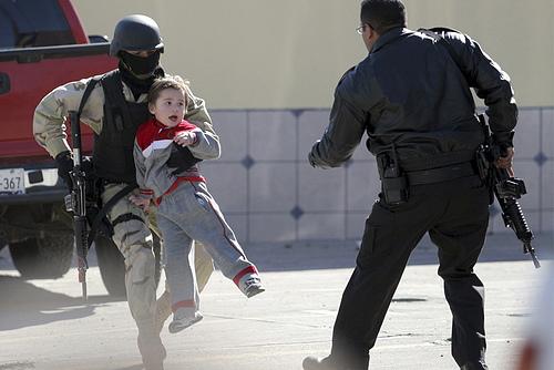 16.January 17, 2008. 墨西哥蒂华纳的一次清剿毒品黑帮行动中警方帮助学校疏散