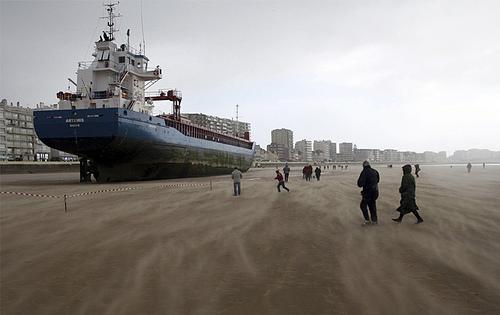 18.March 10, 2008. 荷兰的船舶阿耳忒弥斯号因 dph130 公里的强风搁浅在法国海岸