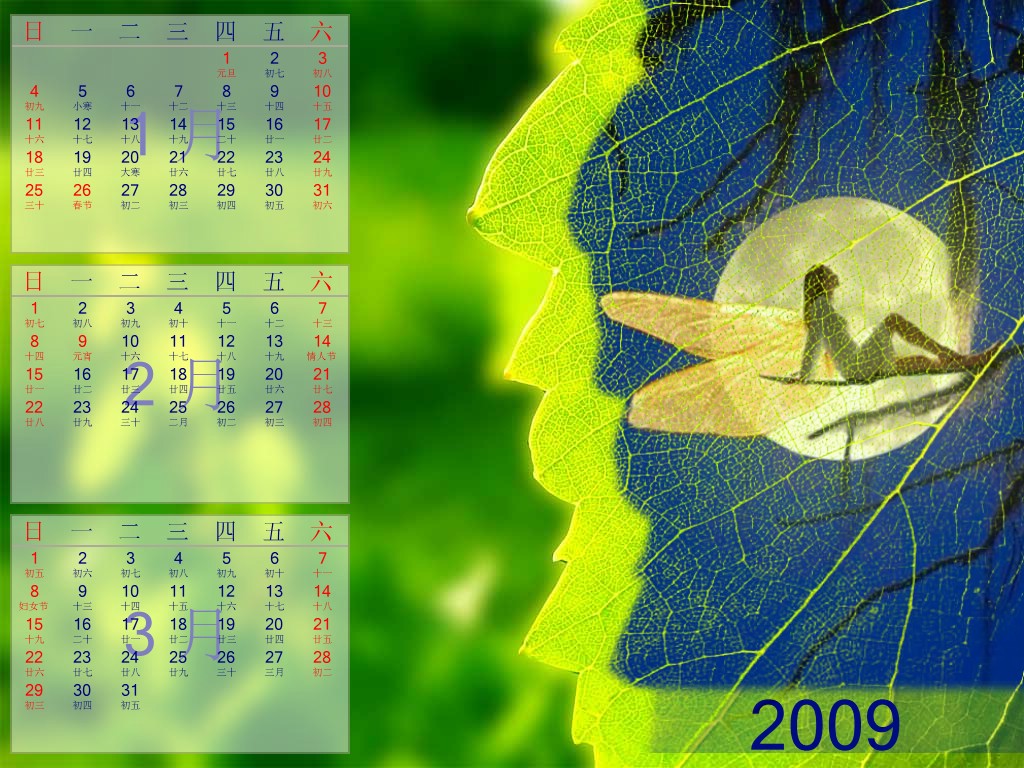 1---3月的日历一份