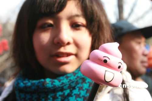 在牛年的北京春节庙会期间,几款寓意“奋斗”的“牛粪”造型的玩具十分畅销,有的“牛粪”上还画上了可爱的笑脸。许多游客将它拿在手里,有的别在头上。据了解,这些小玩意售价十几元钱到二千多元不等,价格虽然并不便宜,但因赋有创意,大受年轻人的喜爱,成为今年北京庙会上的一个亮点。