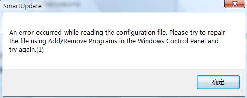 总是显示 An error occurred while reading the configuration file.Please try to repair the file using Add/Remove Programs in the Windows Control Panel and try again (1)