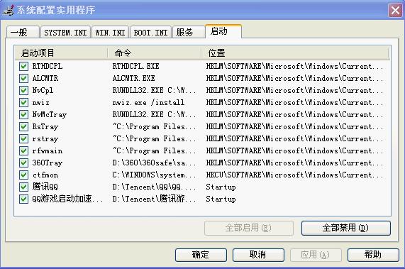 还有一个问题,最近一开机后,只显示左面背景,其他的什么也没有,等了好长时间还是没有显示图标!于是我就重启了一下机器,这种现象马上就好了!一切都正常了!可这也不是办法呀!不能老重启着玩呀!有个朋友说,可能是开机启动的程序太多导致的!让我关闭几个开机程序!可是我不知道关哪个呀!帮我看看关闭哪个呀!先谢谢大家了!