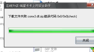 谢谢soaika提供的方法,怎麽现在卡卡还和瑞星防火墙冲突吗?我也出现了楼主截图里那个对话框,无法升级——下载文件失败:comx3.dll.zip,错误代码:0X0/0X0(check),然后删除TEMP和UPDATE文件夹里的文件不顶用。于是在坛子里看到这个帖子,按第二步关闭了瑞星防火墙,卡卡立即升级到了6.0.1.0。难道瑞星产品之间还有冲突吗?貌似卡卡现在连自己的流氓软件扫描也拦。而且瑞星的主动防御还经常拦截我安装的金山清理专家,害我每次启动都要点允许。记得以前已经对二者选了互相信任,怎么还掐呀:default8: