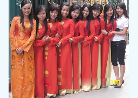 一些越南女子用头巾遮着脸,只露出一对深深的美目,看起来很神秘。我是喜欢看她们穿越南衫的,这种类似于中国旗袍的服装,相当于她们的“国服”了。
