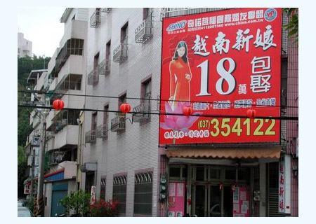 近年来,越来越多在国内找不到配偶的男子把眼光投向越南、缅甸和印尼女子。许多人相信外国女子更贤惠温顺,没有本地女子那样傲慢或势利,因而更适合做他们的妻子。
