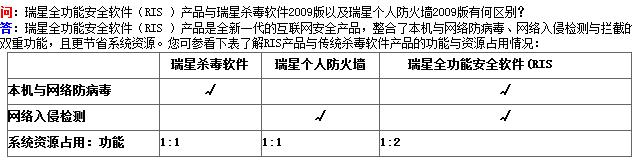 瑞星杀毒防火墙组合与RIS功能一样,在资源占用方面RIS更少。