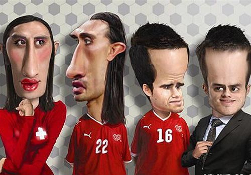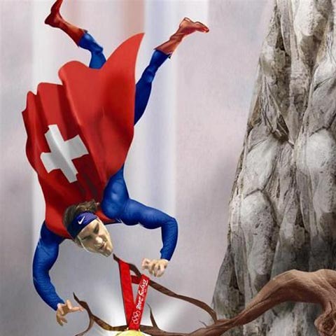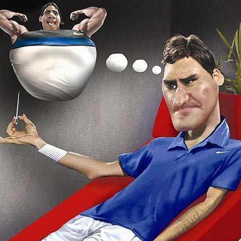 瑞士漫画家卡拉瓦里克总能找出明星们身材长相上最明显的特点加以无限的丑化夸张,却仍旧传神。最近卡拉瓦里克展示了一批他的画作,在他的荒诞离奇色彩丰富的世界里,最受欢迎的男主角就是瑞士网球巨星费德勒,除此之外瑞士足坛的球星们也未能幸免于难。