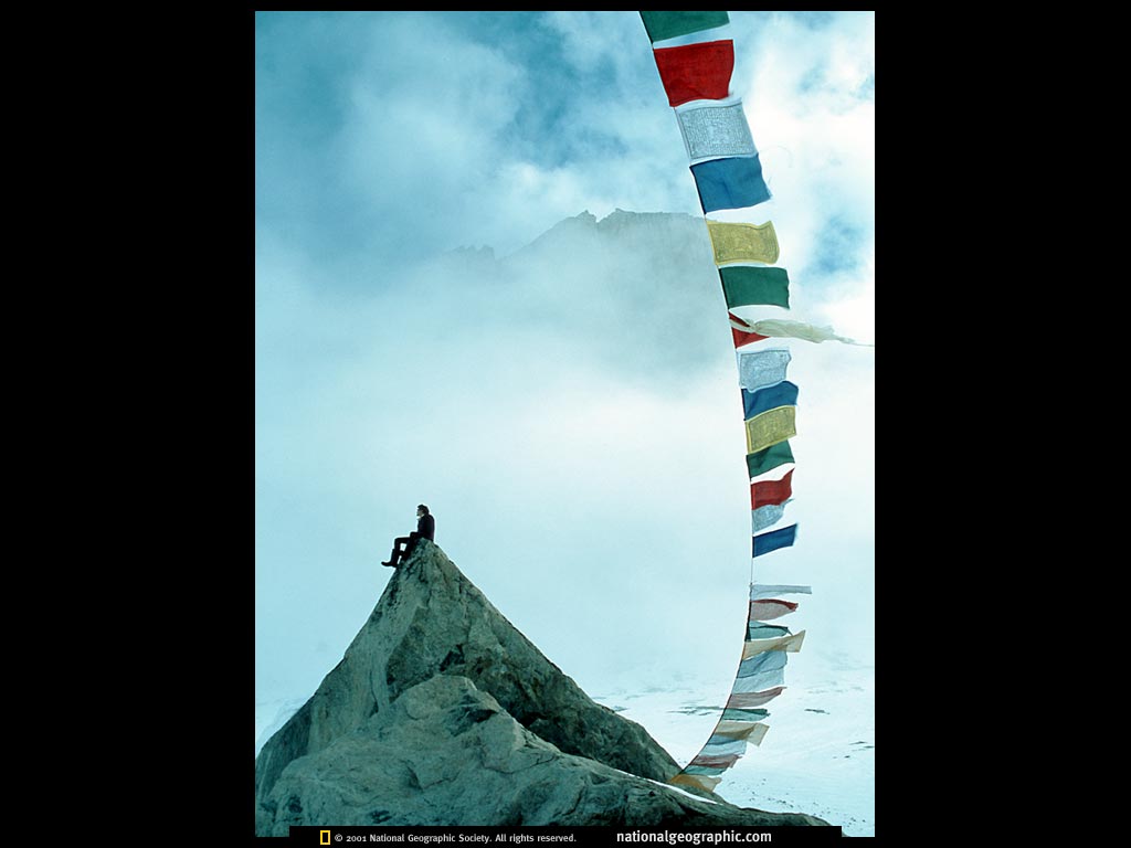 为了祈求好运,登山队按照攀登喜马拉雅山的风俗用绳子缚起一串祈祷的旗子。