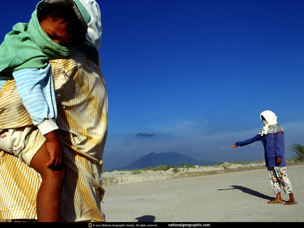 洛丽塔(Lolita Mechado)在1991年菲律宾皮纳图博火山(Mount Pinatubo)爆发时成为了无家可归者,现在她正沿着可以看到Arayat山(Mount Arayat)的公路乞讨,Arayat山是一座休眠火山。