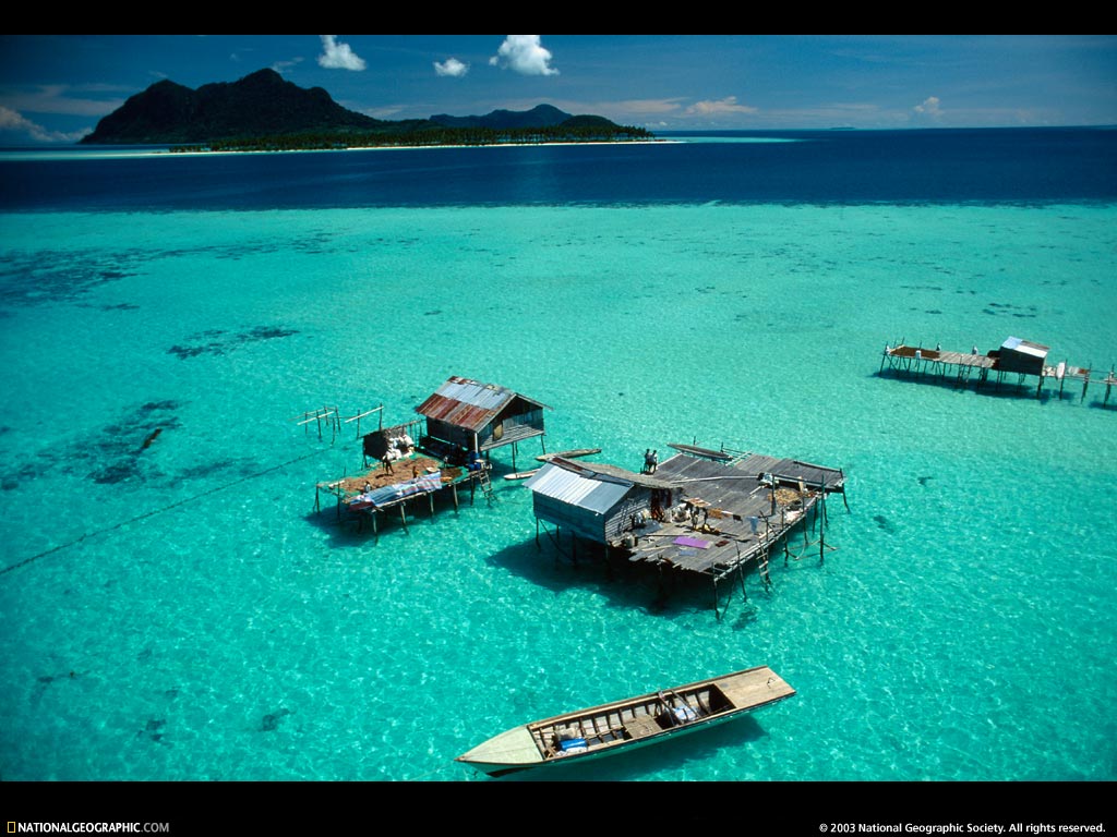 在沙巴东部的仙本娜海岸,高而澄清的潮水退去之后,又到了一天中收获海藻的时刻,海岸有很多由细长的木腿支撑起来的临时建筑。许许多多的菲律宾人和马来人在西里伯斯海(Celebes Sea)上建起数百个这样的临时房屋,靠传统的捕鱼业来谋生。之后他们在这样的房子里运作起养殖业,在浅浅的珊瑚礁上拉起长串