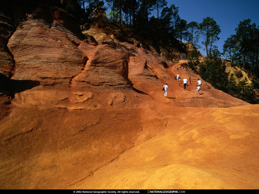 位于鲁西荣(Rousillon)的这个老旧的采石场仿佛演奏着泥土色彩的交响乐,它曾开采过17种不同颜色的矿物,这些矿物为全世界的艺术家带来了色彩丰富的颜料和陶器。当赭石色被更便宜的合成色素取代,采石场遭受了很大的损失并最终于1958年关闭。经过岁月腐蚀,石头变得易碎,这里被宣布成为历史保护区,现在,旅游观光客们正穿过像粉笔般柔软的岩石。