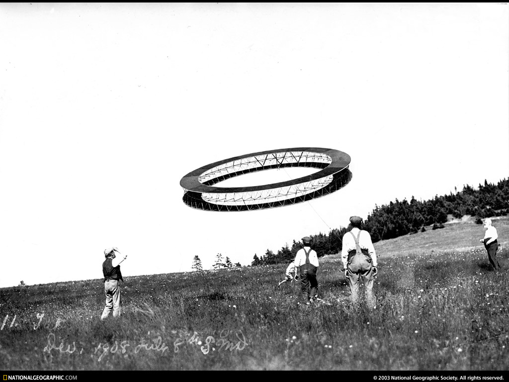 1908年,环形风筝在它的发明者,亚利山大.格雷姆.贝尔,的眼下在Beinn Bhreagh(猜测)飞起。贝尔博士在确定人类可以飞翔并且他可以发明这个机器之前,他已经用风筝实验了很多年。