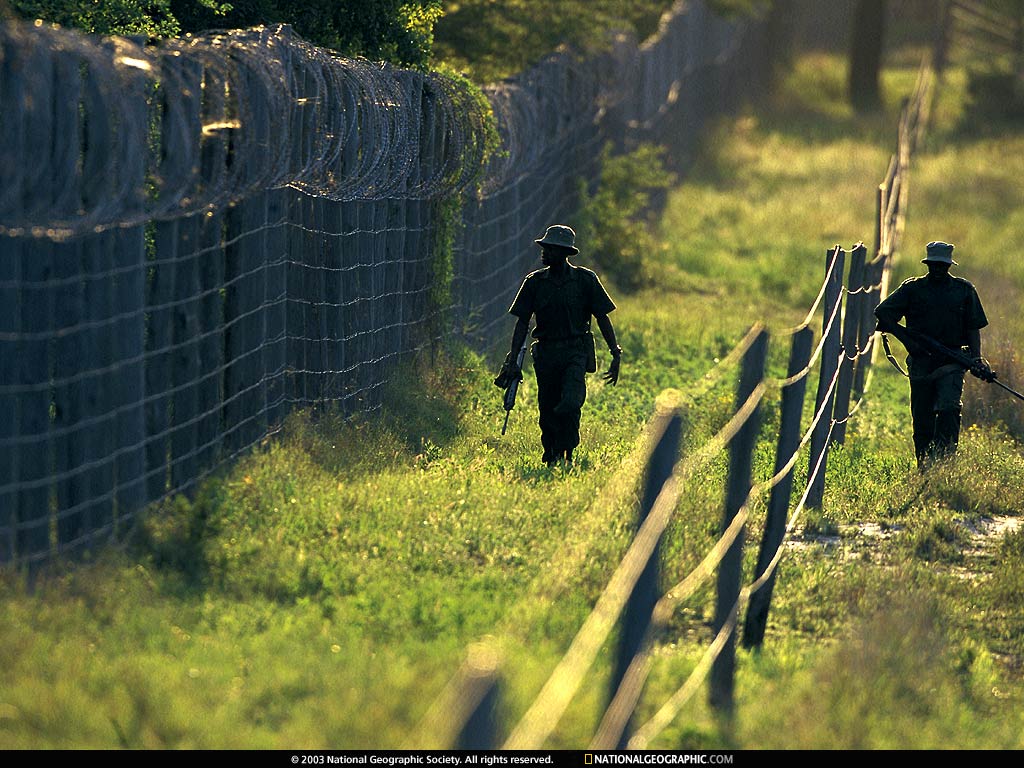 公园护林员在卡格拉格帝跨国公园(Kgalagadi Transfrontier Park )边界处巡逻。