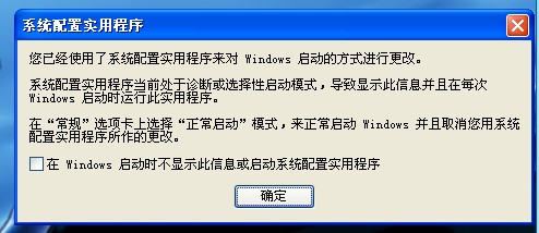 这是修改开机启动项或者类似操作之后产生的提示对话框,只要你选择不再提示该消息,下次启动就不会出现了。当然如果你在执行修改操作,他又会出现的。