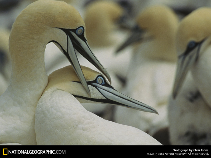 位于南非塘鹅岬可能是一幅高雅的图片,但塘鹅们害怕粗暴的干扰,一位摄影师发现在三天的时间里为它们摄影,在南非的Malgas岛。摄影师说:“它们保持喧闹生活24小时一整天,那简直是震耳欲聋”。