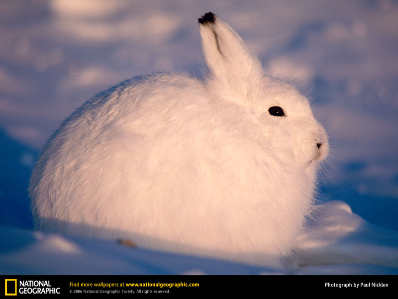 北极野兔短耳朵白皮毛是它身体的特征,这样适合冻土地带幸免于难。