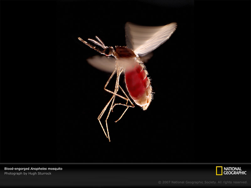 雌蚊的腹部充满了血,那是为了滋养它的卵子,一只雌蚊按蚊(按蚊也称疟蚊――能携带疟原虫)在上空飞时,它落到人类接受它的叮咬,雌蚊是唯一能够携带人类的疟疾的寄生虫。当按蚊的雌蚊猛刺进人的皮肤吸血时,还会喷射抗凝剂,假如它叮咬的是患有疟疾的病人,那么雌蚊也就把疟原虫吸进它的体内,然后她又去叮咬其它的人,又把雌蚊体内的疟原虫传播到另外的人造成新的疟疾病人。