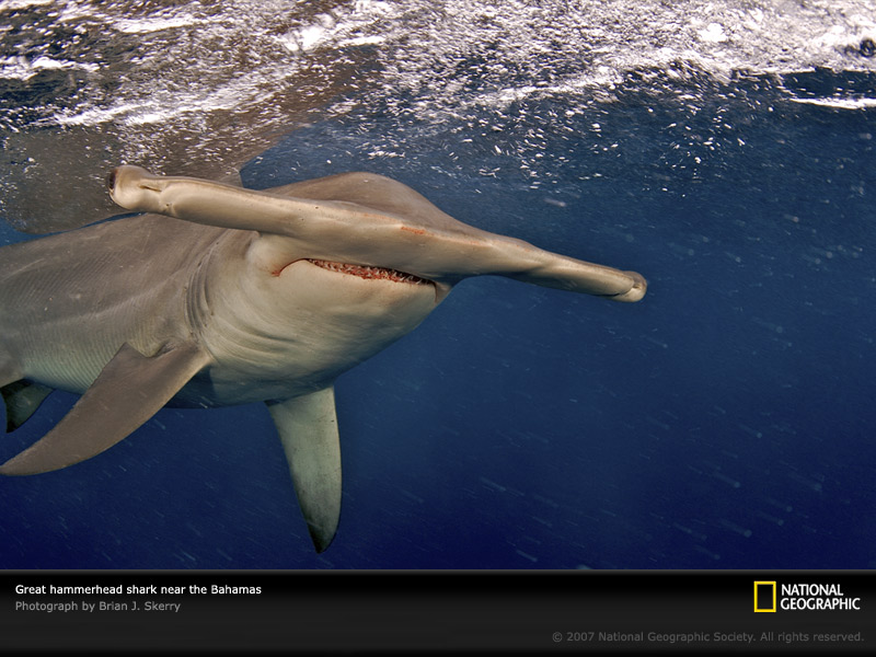 原始的外貌,巨大的锤头鲨,这只就是靠近巴哈马群岛,是实际的进展的高级的鲨鱼群。睁大的眼睛和鼻孔提供敏锐的外周的感官,还很少的电子接受器在它的口鼻部能帮助它查明被掠食者。具有十二个锯齿状的牙齿作为依靠。