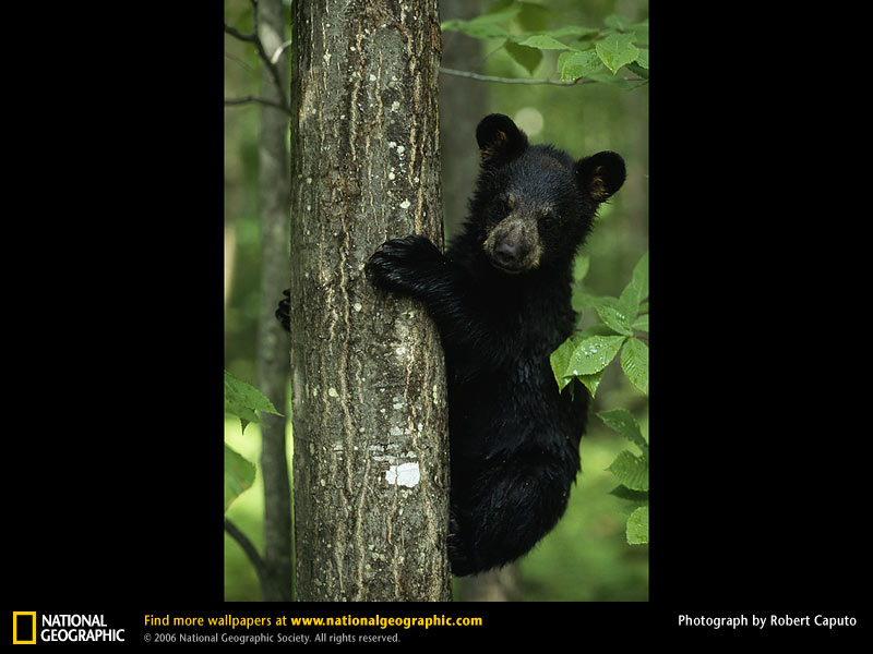 黑熊是极好的攀登者,攀登树去玩,隐藏,吃,甚至冬眠。