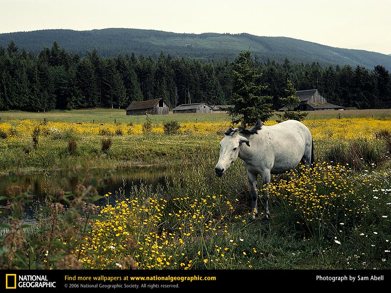 一匹马站在一个外地的野花对郊区sequim ,华盛顿。 虽然奥林匹克山是一个有雨的陷阱,为潮湿的太平洋气流,每年倾倒140英寸( 366厘米)的percipitation就一系列山的winward斜坡上,他们还投下雨阴影 ,在东北方的半岛。 这喜庆的事实,给人sequim绰号,“阳光Sequim ”。