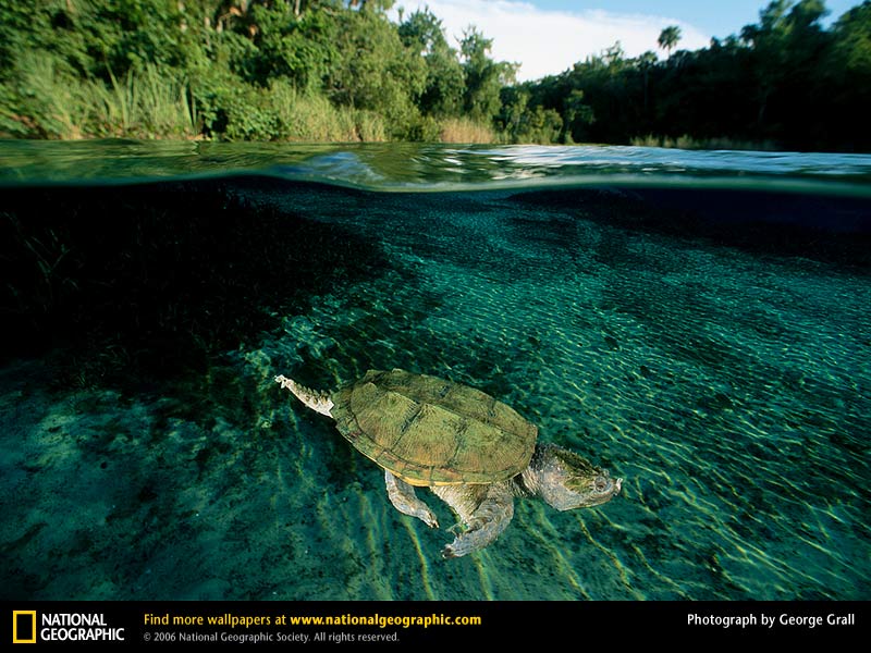 来自自然界的沉重行走的海龟,一个震惊的普通甲鱼耐心优美来自它的笨重,肌肉的身体使它游过一个佛罗里达的池塘。但它们并没有看到那锯齿状的尾和大头乌龟隐匿在水底在那沼泽地里是一个美丽的雄伟壮观的动物。