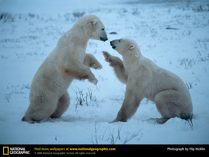 年轻的雄性熊玩打斗在哈德逊河湾岸边无害的秋季前奏春季战役为对手能在末端粉碎四肢。整个夏季打瞌睡,雄性可能受益于这种运动,并借鉴,以评估其它熊的力量" 。