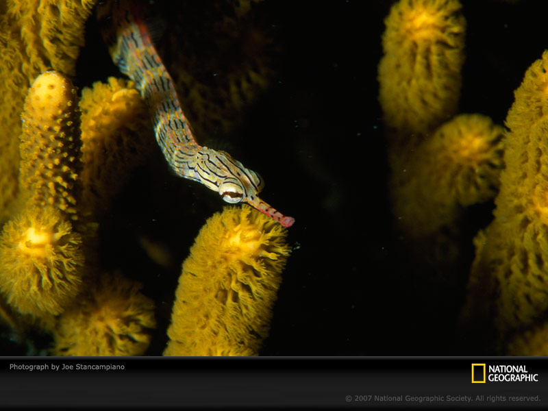 一只尖嘴鱼游泳其管状鼻吻部在准备在太平洋上的惊涛骇浪。 有关海马, 150多个品种的尖嘴鱼骨盔甲,但他们缺乏规模。 小鱼经常生活在海底的水生植物,给它们封面以追捕猎杀行动。