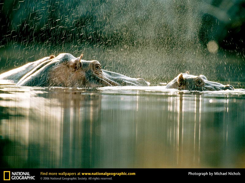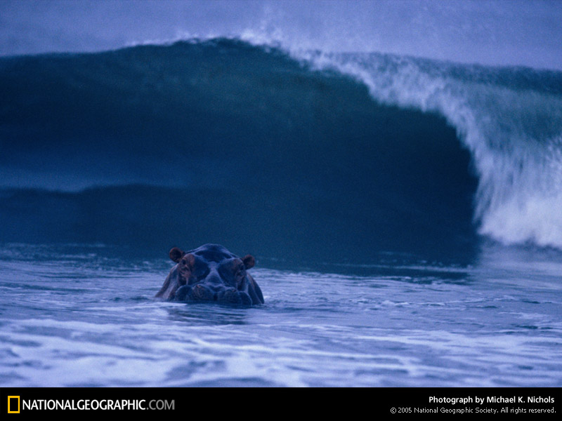 一位母亲和她的小河马无所顾虑,在凉爽的以"土地换的冲浪河马" Loango国家公园,经过一番努力昵称从驻地河马的习惯,游泳,在海洋和身体冲浪和从觅食土地。