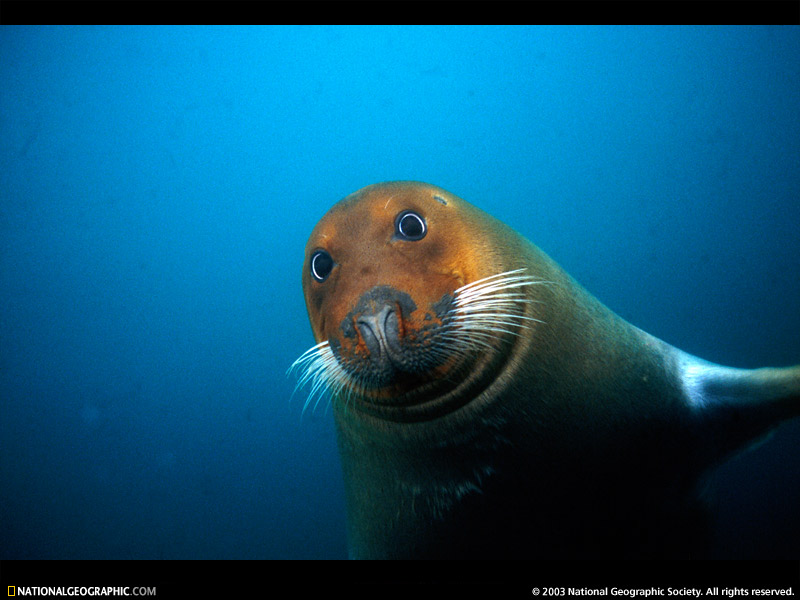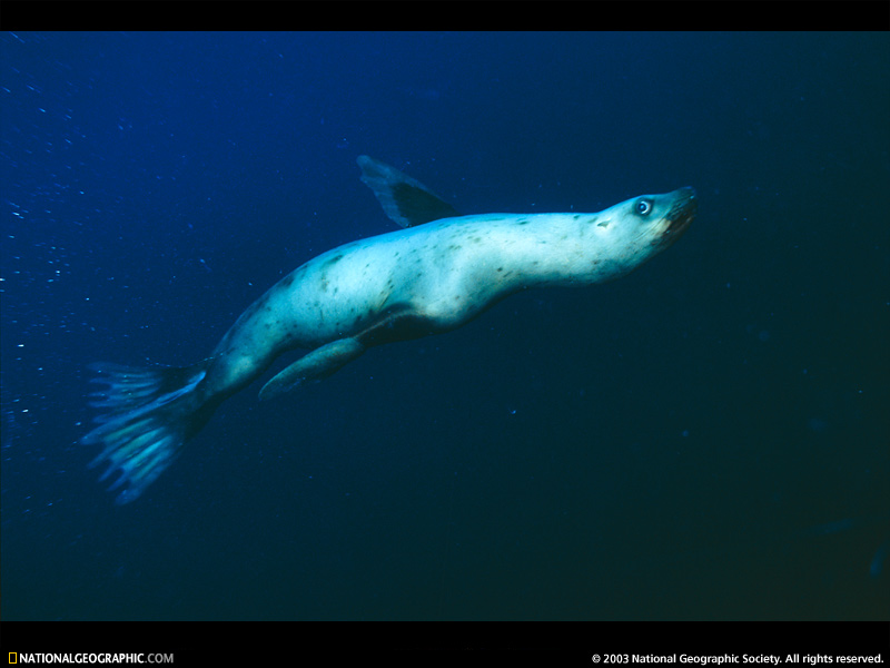 一只海狮巡游在太平洋富有食物的区域靠近加拿大的猎刀海山。