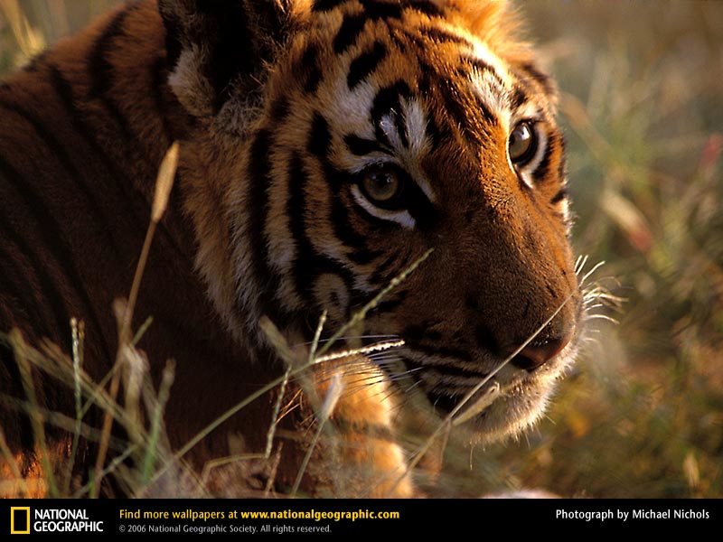 因为老虎狩猎主要在黄昏和破晓,它们的斑纹帮助它们隐藏在高草的阴暗里。