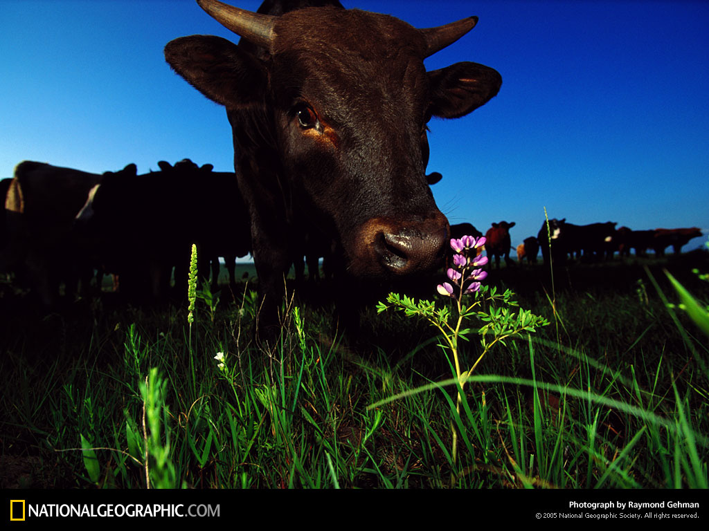 野牛吃草慢吞吞的在浅蓝色的北达科他天空之下