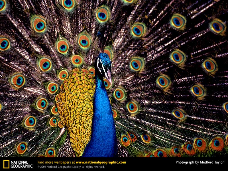 雄性孔雀用它的闪耀的羽毛去奉承和诱惑雌性孔雀