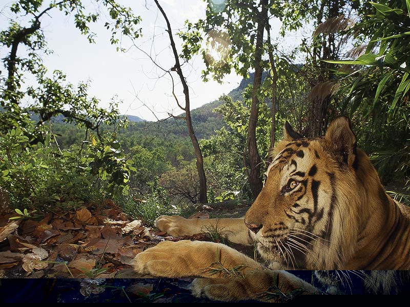 老虎主要是夜间捕杀猎食,到了白天它就休息闲逛在草地或是在森林里把自己伪装起来。