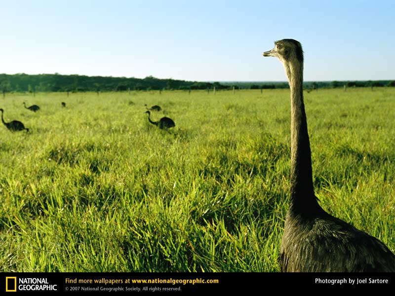 体态较大的美洲三趾驼鸟,生活在巴西的Pantanal高大的草原。而非洲则是全世界大草原总面积的过半量。但是在南美,亚洲,澳洲也都有这种动植物栖息地。
