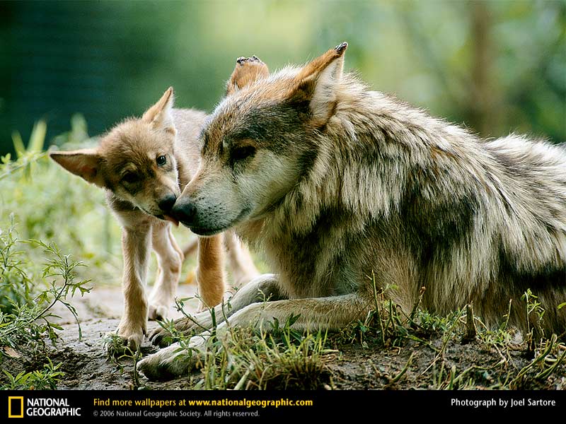 两只墨西哥灰狼用鼻子相互爱抚在塞奇威克郡动物园。同一个家庭组成就会更加接近和相似在灵长类动物的社会中有一个社会交际活动,许多狼群接受一对有教养的狼的领导――雄性和雌性的狼的领头狼,它们会关心幼畜和用战斗保护它们的家庭。