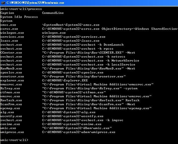 等待 wmic 小程序安装完毕后,再在 cmd 下输入 process 命令:
