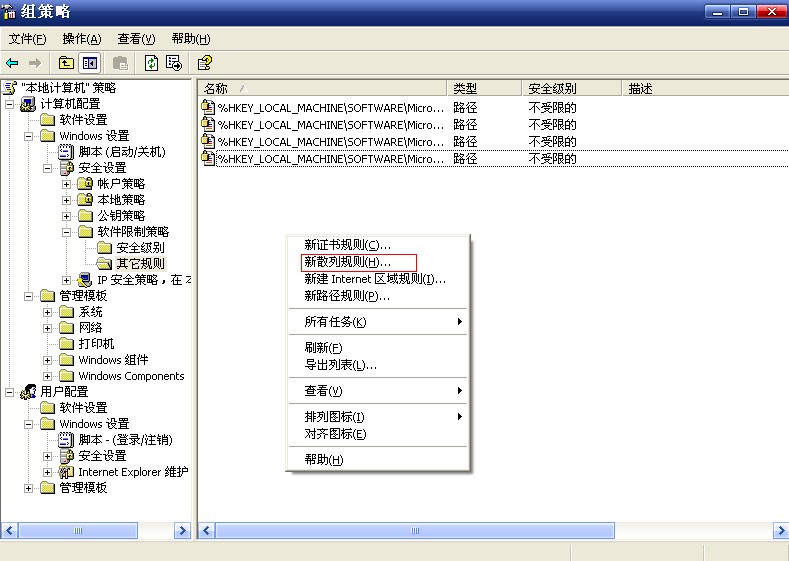 再依次打开“计算机配置--WINDOWS设置--安全设置--软件限制策略--其他规则