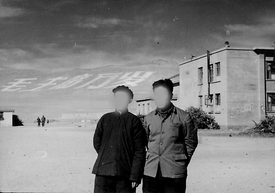 人物背后是文革时期西藏阿里地区唯一的一座二层楼房――狮泉河大礼堂。