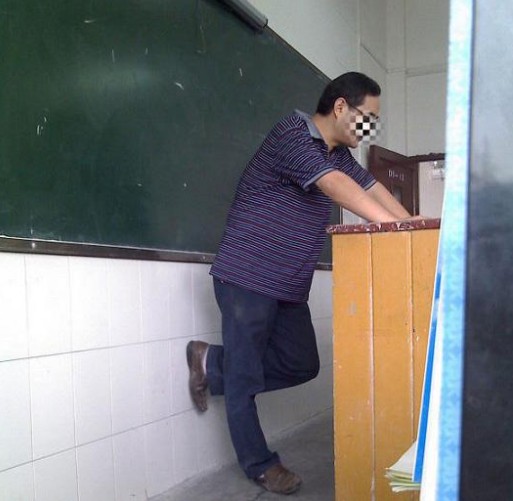 踹着墙那个倒是可以理解,站着讲一堂课也不容易,他也累,好在是瓷砖墙