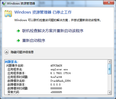 这个不好说,一般认为是你的桌面进程下任然插有非微软模块开机自动载入,导致某种冲突。最终桌面进程出错。建议用查看系统进程工具ProcessExplorer去查看桌面进程下的模块加载情况,重点查看非微软的模块。