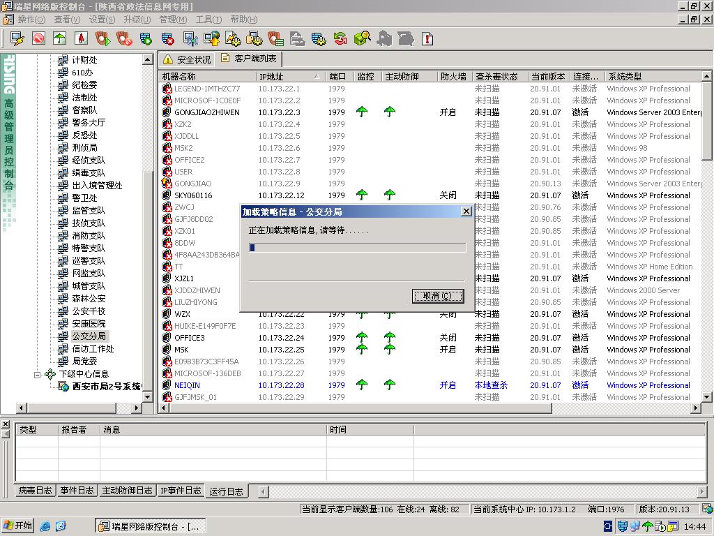 最近瑞星网络版2008运行中有些问题,主要是个别分组系统策略加载不上,一点“客户端选项”、“主动防御策略”、“防毒软件策略”,进度条停滞不前,重新建了那几个有问题的分组,问题依旧,如何解决?在线等!