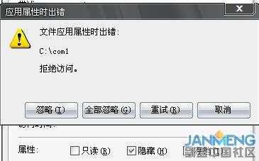 1.大家试试:在C盘根目录新建一个文件夹,改名为com1,改不了,对吧.因为这是一个设备名,那我们把它改为com吧,这下行了.不过这不是我们的目的,我们的目的是改为com1,怎么办?请按如下方式操作: